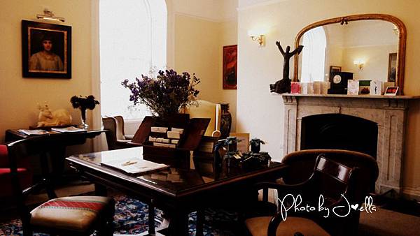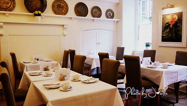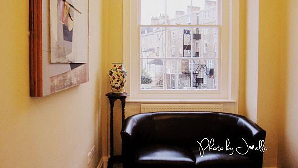 即使細雨綿綿,Henrietta House外牆氣質不變但難免有股冷清,踏入室內後立即感到一股暖意,有種置身另一個時空的錯覺。接待處坐著一位高瘦金髮的年輕人,旅途中難得見到旅館接待穿著如此正式服裝,正統英國腔調與莊重有禮的態度根本就是莊園豪宅內才有的管家形象(唐頓莊園看太入迷