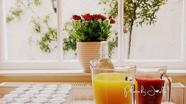 隔天早起,緩慢地在迷人的早餐室享用現點現做的全套早餐。剛開始只有我們一桌客人,感覺像有專屬的可愛服務生與廚師。