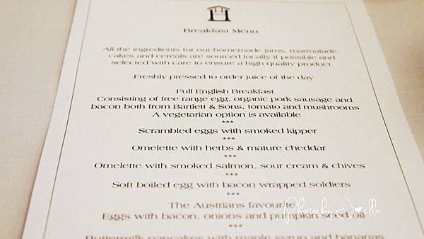 每桌都有一份菜單,旅館非常注意細節與客人感受,連早餐都有種置身高級餐廳的錯覺。