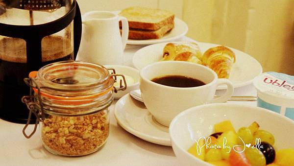 眼前雖然有數種現烤麵包及糕點自由選取,但是我還是一如往昔地最愛那一盆豐盛新鮮的綜合水果切丁。不過,為了嘗試酒店廚師自製的蜜餞與果醬,我還是嗑了一片土司加一個麵包。